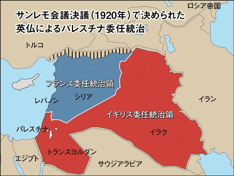 7@1A地図 サンレモ会議決議で決められた英仏によるパレスチナ委任統治12.19