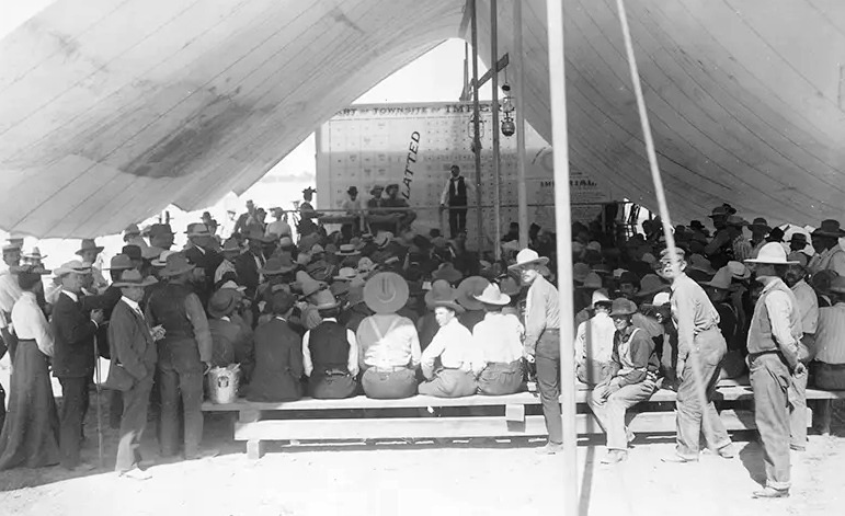 アメリカ大陸で獲得した土地競売の様子(1904年、カリフォルニア)