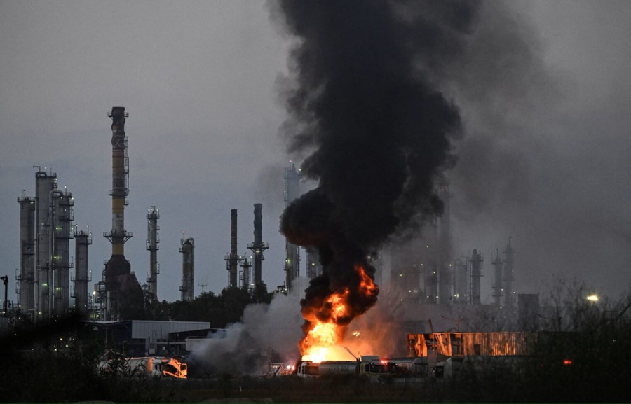 イランの報復攻撃を受けたイスラエル北部ハイファの製油所(6月15日)