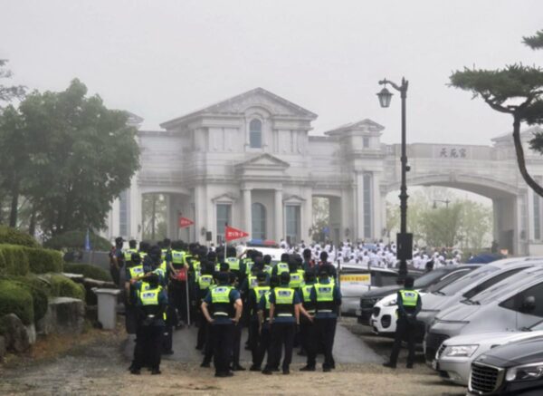 家宅捜索を受ける統一教会の総本山「天正宮」(7月18日、韓国・京畿道加平)
