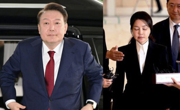 ㊧内乱罪容疑で取り調べのために出頭する尹錫悦前大統領(6月、ソウル高等検察庁)㊨被疑者として特別検察官チームの取調室に出頭する尹錫悦前大統領夫人の金建希(6日、ソウル)