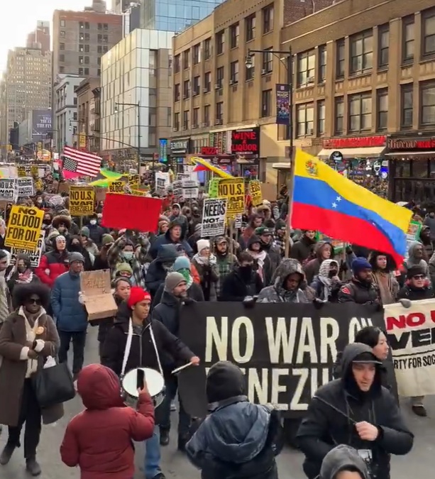 ニューヨークでベネズエラへの違法な戦争とマドゥロ大統領誘拐に対する抗議デモ(4日)