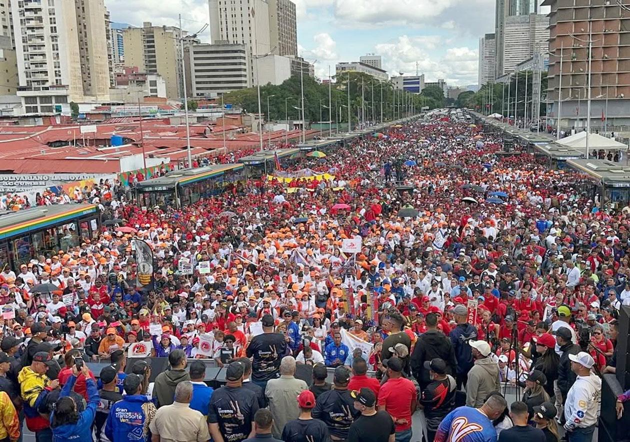 ベネズエラの首都カラカスで、輸送業界によるニコラス・マドゥロ大統領の解放を求める大規模デモ(14日)