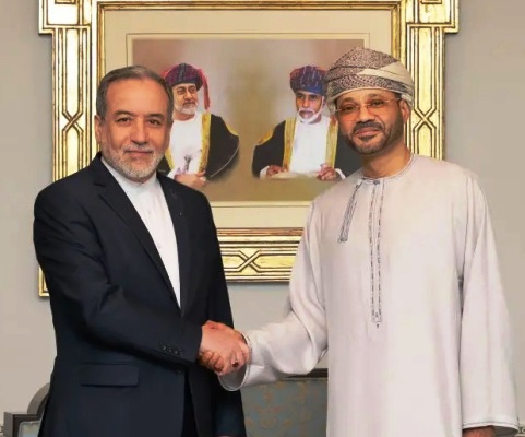 オマーンのバドル外相㊨とイランのアラグチ外相(2月)