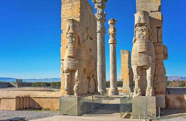 紀元前6世紀に建設されたペルセポリス(アケメネス朝)。ゲートに設けられた人頭有翼獅子像は宮殿の守護を司る