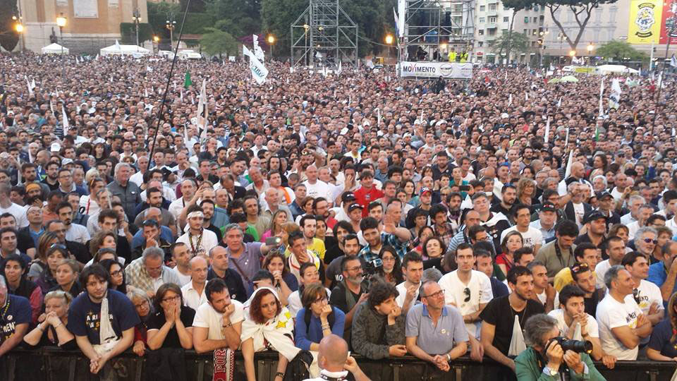 五つ星運動の集会に参加するローマ市民
