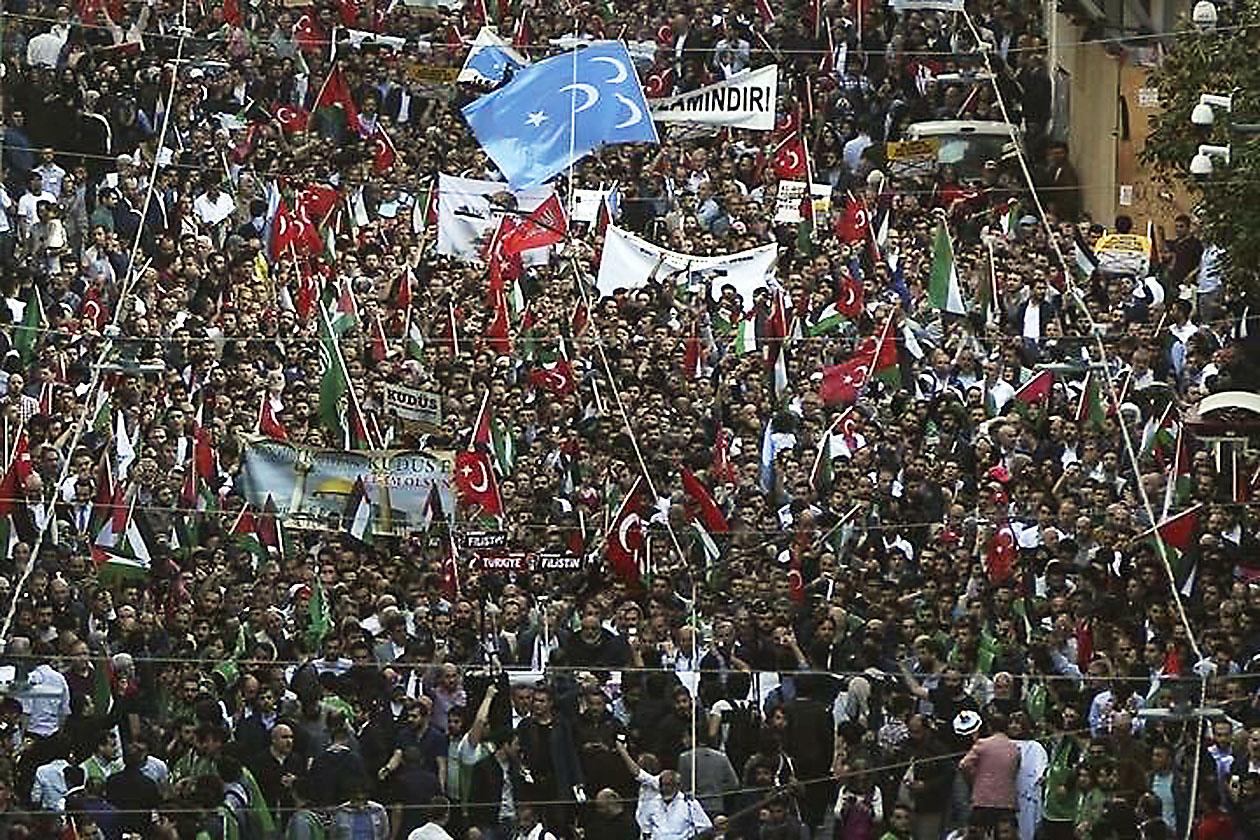 トルコで開かれた虐殺抗議デモ(14日、イスタンブール)