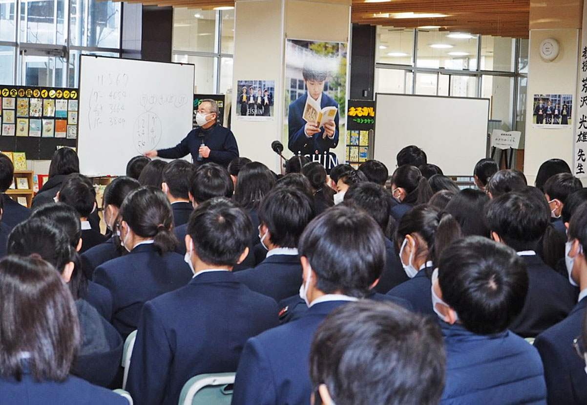 広島県の盈進高校での出前授業「芳沢光雄先生の講演会」(2022年10月)