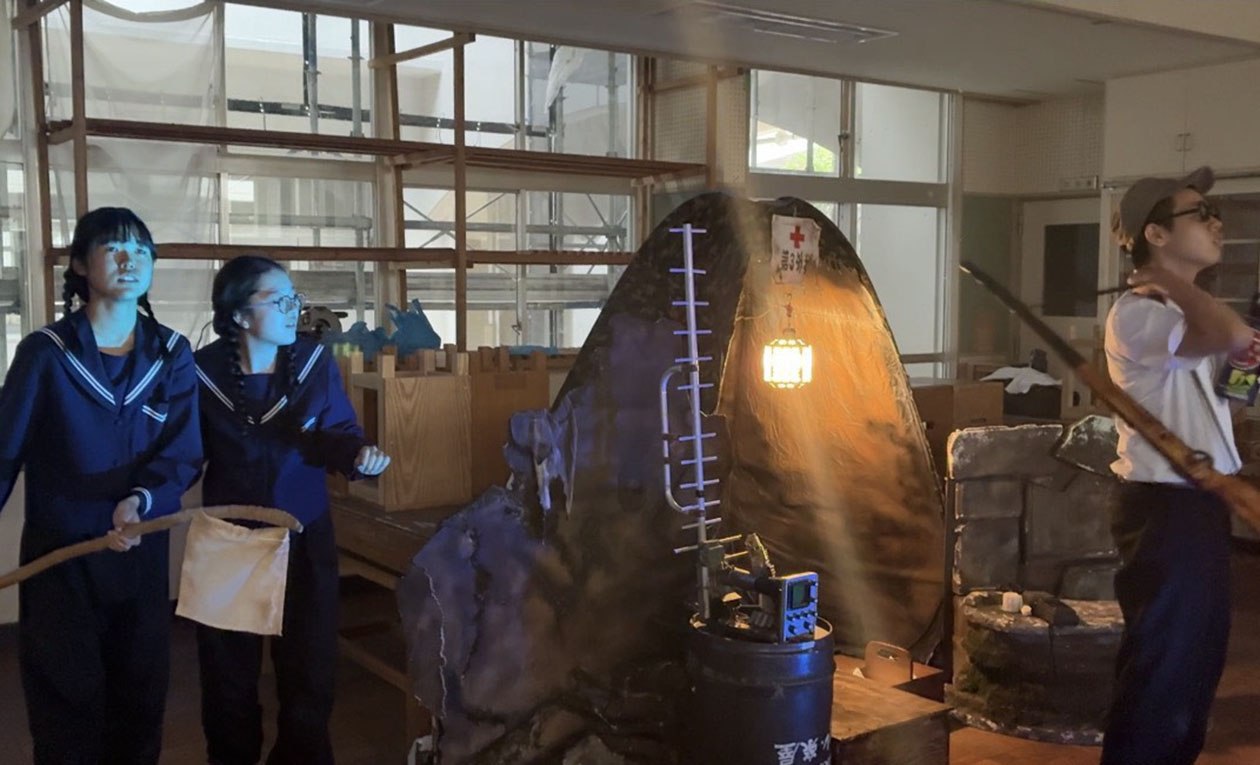 平和劇「HIMEYURI 伊原第3外科壕の奇蹟」の練習をおこなう那覇市立安岡中学校演劇部の生徒たち