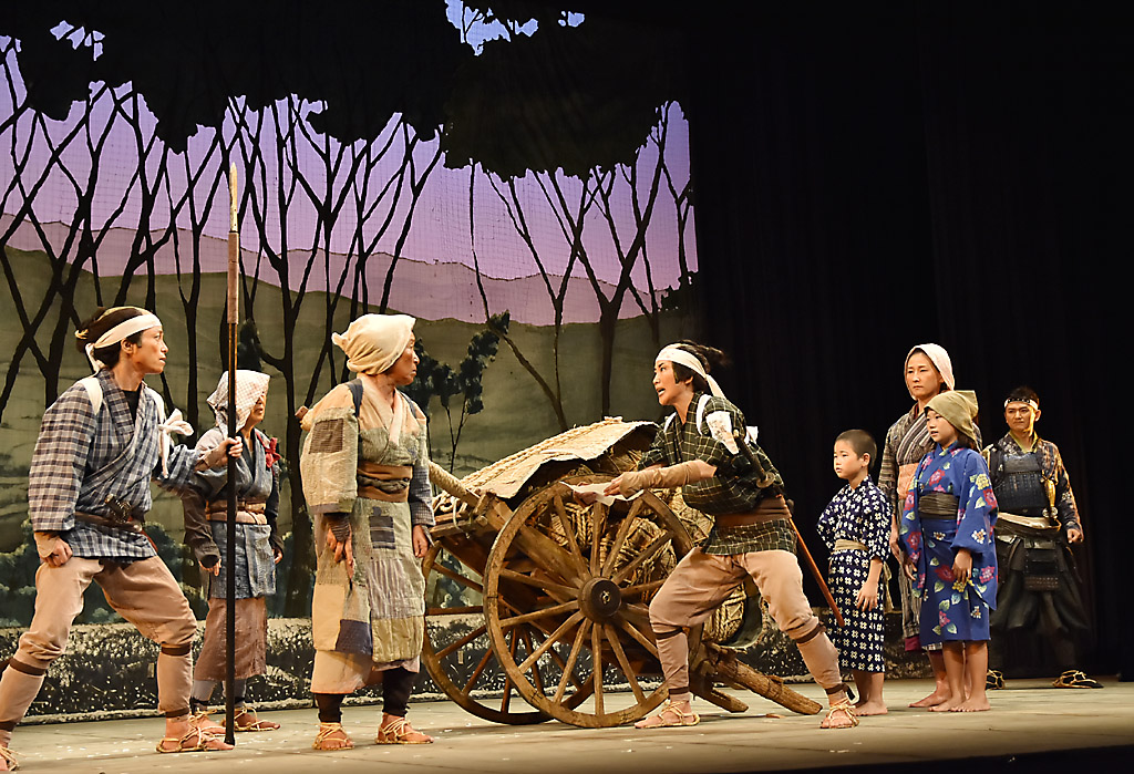 米俵を積んで支援に駆けつけた農民たち(劇中場面)