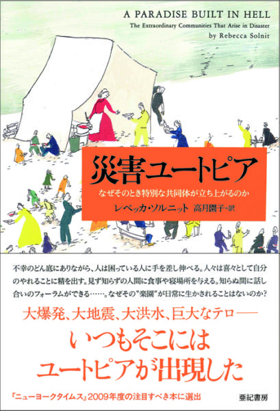 アメリカ在住のノンフィクション作家レベッカ・ソルニットは、1965年と2003年のアメリカ北東部大停電、1989年のサンフランシスコ湾の大地震、2005年にメキシコ湾を襲ったハリケーン・カトリーナの現場を取材して次のようにのべている。大災害はそれ自体は不幸なものだが、その瓦礫のなかから、高齢者や子どもを助け、自分のためよりもみんなのため、地域社会のために行動する意識が人々のなかに芽生え、政府の棄民政策にもかかわらず、この連帯意識が大きな流れになってどんなに被災地を立て直してきたかに気づいた、と。それをまとめた『災害ユートピア』(亜紀書房発行、高月園子訳)が、今再び注目を浴びている。