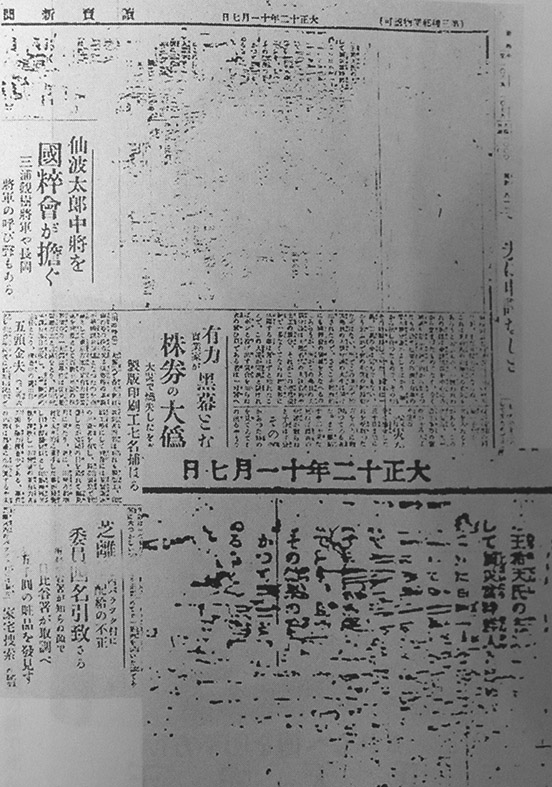 記事が削除されて一部が白紙で発行された『読売新聞』1923年11月7日付