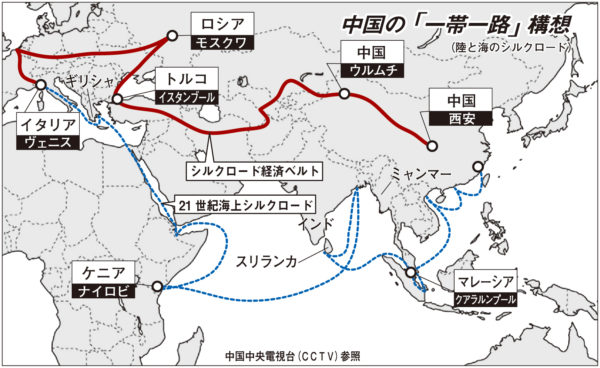 一帯一路は2013年に習近平国家主席が提唱した長期国家ビジョンである。「一帯」は中国西部から中央アジアやモスクワを経由してヨーロッパへと続く「シルクロード経済ベルト」である。「一路」は中国沿岸部から東南アジア、スリランカ、アラビア半島の沿岸部、アフリカ東海岸のケニアからヨーロッパへ続く「21世紀海上シルクロード」である。今後数十年をかけて、これらの地域に道路や港湾、発電所、パイプライン、通信設備などインフラ投資を皮切りに、金融、製造、電子商取引、貿易、政策立案などに参画し、産業活性化を図る方向だ。これはアメリカが第二次世界大戦後に推進したマーシャルプラン以降で最大級となる海外開発計画で、国連機関はこの経済効果を12兆㌦に及ぶと試算している。
