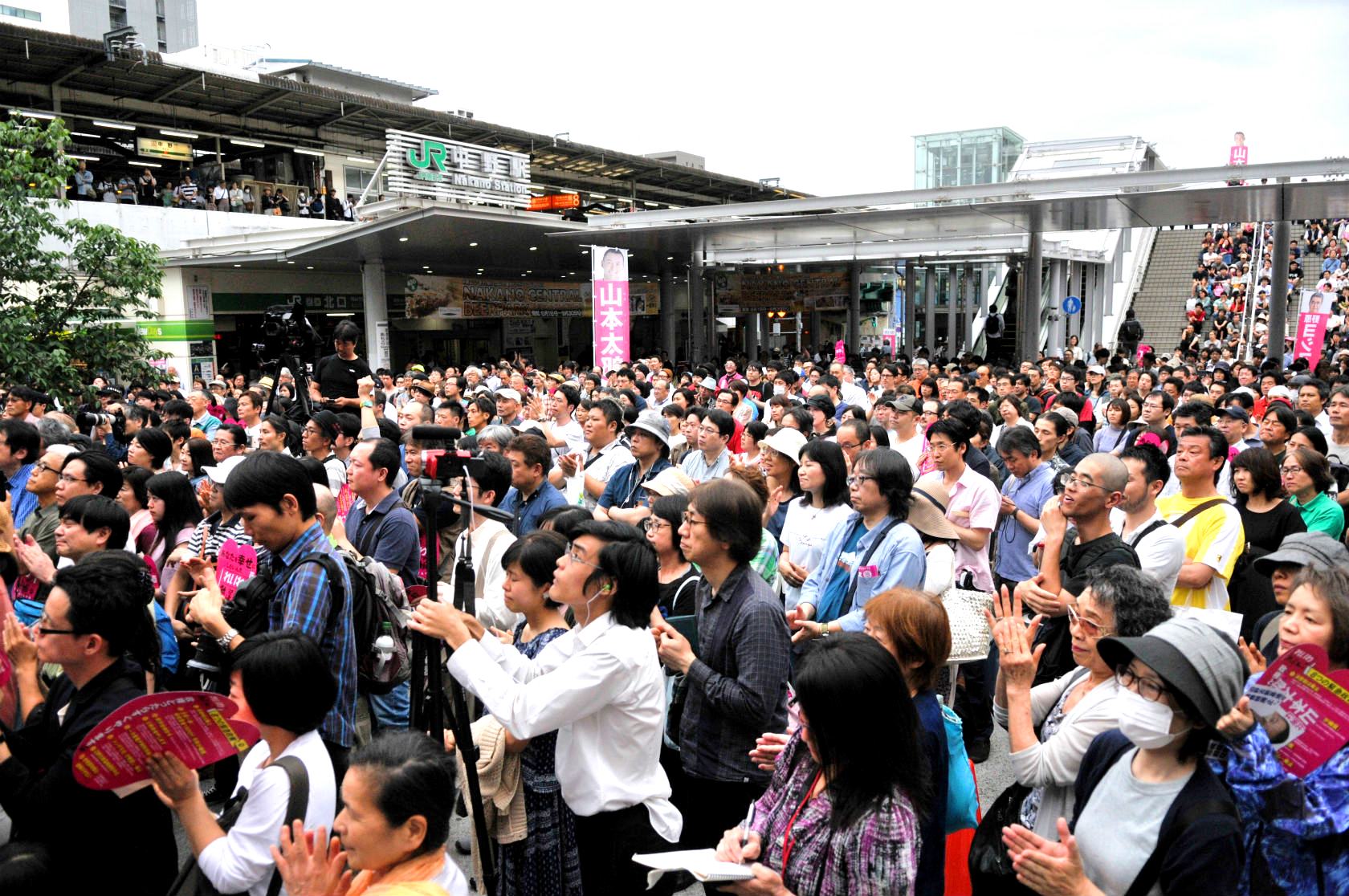 多くの聴衆を集めるれいわ新選組の街頭演説(16日、東京中野駅前)