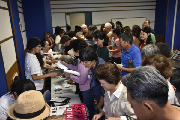 名護市や那覇市の会場には子育て世代も数多く参加していた。ポスター張りなどの宣伝活動や、会場の運営をサポートする現地スタッフのなかにも若い女性が多い。