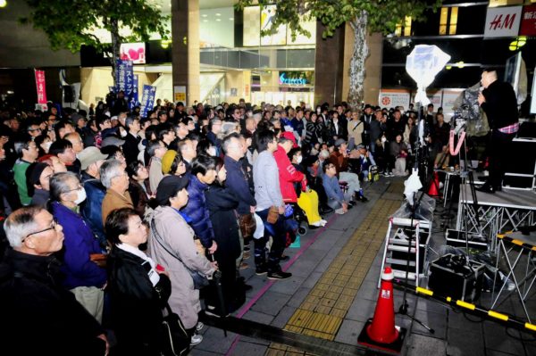 浜松駅前の街頭記者会見では、広場を埋めるほどの人が集まり、子ども連れの親、仕事帰りのサラリーマンや大学生、高校生も足を止めて演説に耳を傾けた。約3時間の冒頭から最後まで質問するために挙手する人が絶えず、熱気に満ちた質疑応答がくり広げられた。