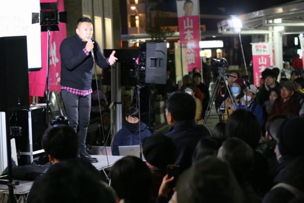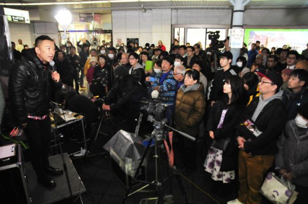 続けて「5割が投票権を捨てるなかで、与党がわずか3割の得票で支配しているのに、野党でありながら与党側にいるかのような貴族のようなたたかい方では政権交代はできないし、壊れていくこの国と人人の生活を立て直すことはできない」と強調した。聴衆からは大きな拍手が沸いた。