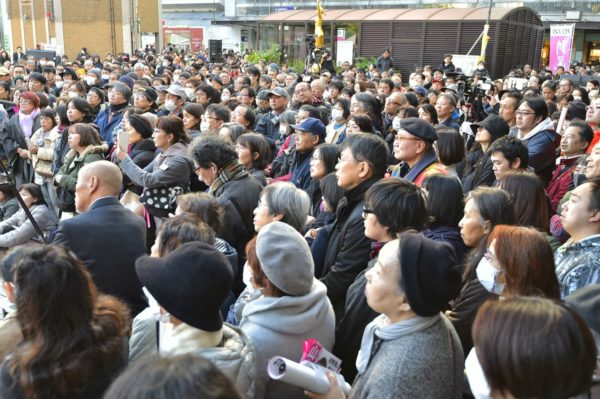 山本代表は、外国人労働者を大量に受け入れる入国管理法改定とあわせてすべて企業側にとって「安い労働力」を作り出すための政策であることを指摘し、「外国人労働者の非人間的な扱いが野放しにされていくことで、賃金も安い方へ、労働環境も悪い方へと置き換えられていく。マレーシアでも同じことが起きている。これによって企業側が得をするが、その怒りをこの経団連やその代理人である政治家に向けなければ、この国の労働者と外国人労働者との間で分断や対立が起きていくような未来をつくり出すことになる。非正規雇用を増やすということは、とりかえの利く部品としての働かせ方だ。奴隷以下だ。だからこそ権力を取り返してみんなのための政治をやるために力を合わせようというお誘いだ。消費税も経団連は2025年までに19%まで上げろといっている。その税金は社会保障には一部だけで、その多くは法人税減税の穴埋めに使うのだ。雇われ店長に過ぎない政治家や総理大臣に権力を委ねるのではなく、この国の本来の権力者であるみんながつながって価値のある世の中を作っていこう」と訴えた。