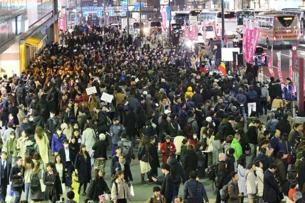 れいわ新選組の山本太郎代表は18日、全国ツアーの年内ファイナルとして東京都・新宿駅南口で街頭記者会見をおこなった。今年最後の街頭演説を見届けようと駅前には多くの人たちが集まり、新党旗揚げから参院選、全国を細かく回るツアーに踏み出した今年一年をふり返り、全国各地で切実な要求を束ねながら政治変革の力を拡大してきた成果を共有した。
