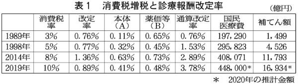 今回の消費税10%対応で、診療報酬は0・89%引き上げられた。30年間の消費税に対応した診療報酬引き上げの合計は3・78%だ【表1】。