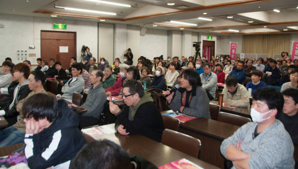 郵便局に勤める30代の男性は、今年4月から全国一斉に施行される「同一労働同一賃金」(パートタイム・有期雇用労働法)について職場の実態をふまえ意見と質問をのべた。「私は郵便局で派遣として働いている。郵便局は職員の半分が派遣で40、50代の人たちの出入りが激しい。時給もコンビニと変わらないほど低く、郵便局にいても今の給料では将来が恐ろしいと感じる。バイクに乗っての配達の仕事は命の危険もあるが、同僚は生活のためにみな頑張っている。同一労働同一賃金と聞いて、同じ仕事をしているのであればパートでも派遣でもアルバイトでも正社員と同じ処遇になると捉えられるが、実際は正社員の処遇を下げると思う。同一労働同一賃金をどう考えるか。日本全国の労働者の4割まで広がった派遣労働は必要ないと思う。どう考えるか」と質問した。