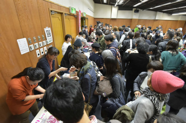 会場では、ポスター貼りなどをおこなう地元のボランティアチームが、仲間を募って自作のチラシを配るなどして市民の繋がりを広げるとりくみをおこない、参加者同士が交流していた。