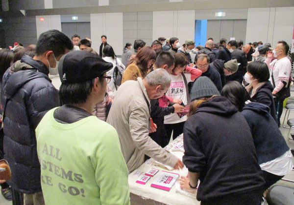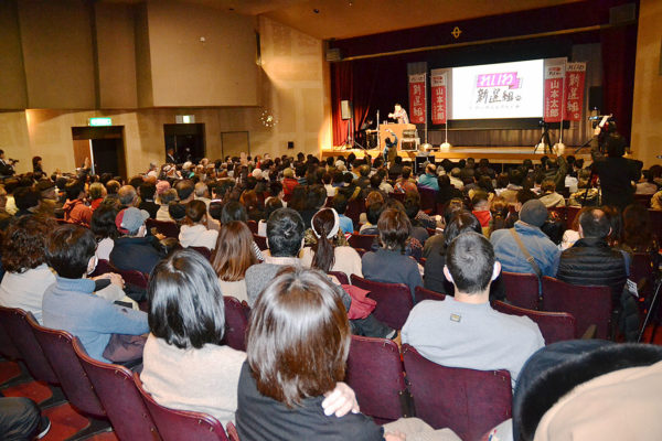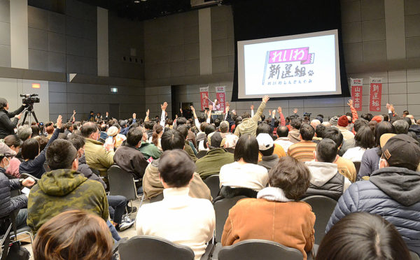 大垣市では会場のソフトピアジャパンセンターに約300人以上の聴衆がつめかけ、山本代表の言葉に真剣に耳を傾けた。