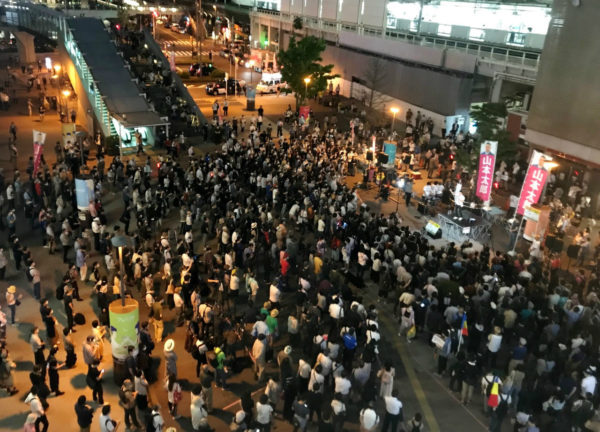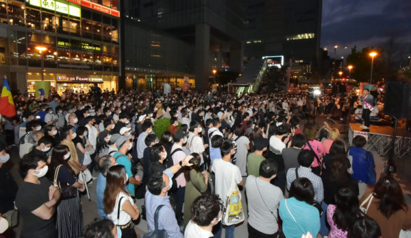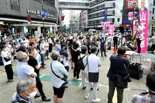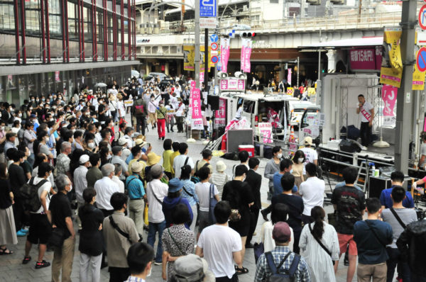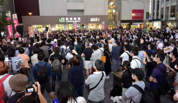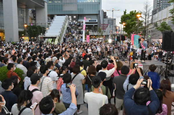 7月5日に投開票される東京都知事選は、新型コロナウイルスの感染拡大が続く未曾有の状況下で強まる経済的格差の拡大や生活苦の増大など、緊迫した都民の生活実感と結びつき、その問題意識を束ねながら進行している。れいわ新選組公認で出馬した山本太郎陣営は、19日に高田馬場駅前、恵比寿駅西口、五反田駅東口、品川駅港南口、20日には池袋駅西口、上野駅公園口、21日には立川駅北口、三鷹駅前、吉祥寺駅前、中野駅前で告知なしのゲリラ街頭宣伝をおこなった。また20日には、政府による都道府県をまたいだ移動の自粛要請が解除されたことを受け、秋葉原駅電気街口で「大ソーシャルディスタンス祭」と称して告知街頭演説をおこない、多くの人々が演説会場周辺を埋めた。