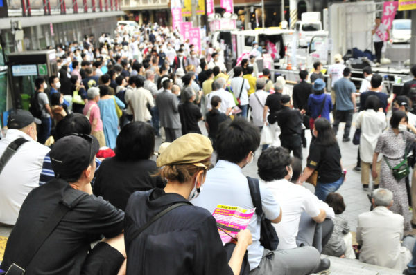 ゲリラ街宣には、偶然通りかかった人たちも足を止め、山本氏らの訴えに聞き入っていた。涙を流しながら演説を聞く人や拍手を送る人、掛け声が飛び交うなど、訴えの内容と響き合いながら日を追うごとに盛り上がりを見せている。