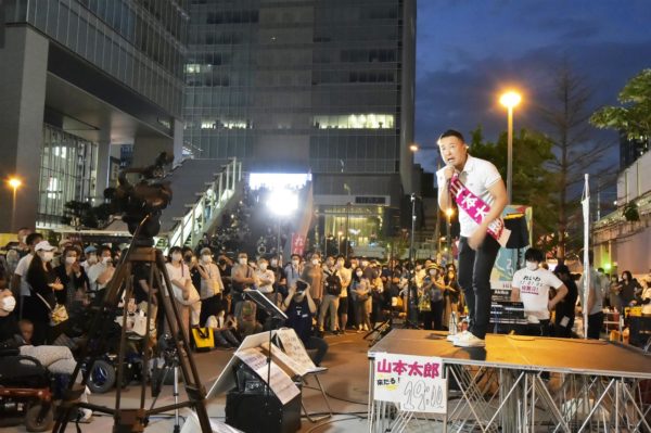 別の30代の男性は「自分もテレワークで出社が2割に減り、外食や商店を見ても客がおらず、街全体が疲弊しているのがわかる。母親もホテル清掃の仕事をしていたが、客が減って出勤日が激減したので収入が途絶えた。これまで山本太郎を斜めに見ていたが、ただ批判するだけでなく、しっかりしたビジョンを持っていることがわかり、見方が変わった。東京都は国に対して気を使うポジションではなく、揺さぶっていくだけの力をみせるべきだと思う」と話していた。