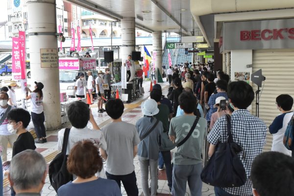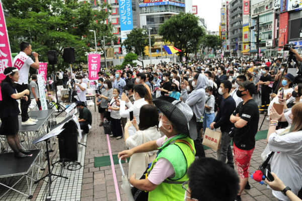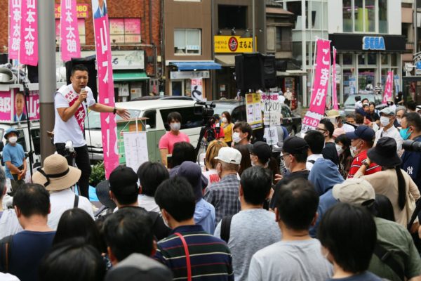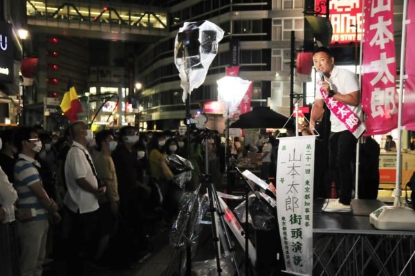 都知事選に立候補している22陣営のうち最も旺盛に単独の街頭演説をくり広げているのが、れいわ新選組公認の山本太郎陣営で、都内各地で告知なしのゲリラ街宣をおこない、不特定多数の無党派層への訴えを広げている。駅頭を中心にした街宣はどこでもたちまち人だかりとなり、その訴えに真剣なまなざしを向けている。既存政治への幻滅や不信も入り混じるなかで、本気の対話が生み出す空気は「白けムード」を払拭する熱量を放ち、都知事選を揺り動かしている。