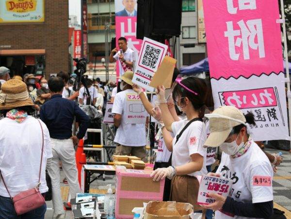 陣営に寄附をした60代の女性は「娘が暮らしているオーストラリアのメルボルンでは、コロナ感染対策として、市民には2週間で1500㌦(約16万円)が7月まで振り込まれるという。無症状の人の検査もドアをノックして家庭訪問形式でやったり、スーパーの駐車場などで無償で受けられるという。これに比べると日本はなにもしていないに等しい。山本さんには経済政策だけでなく、東京都のコロナ対策の不透明な点も追及してもらいたい」とのべた。