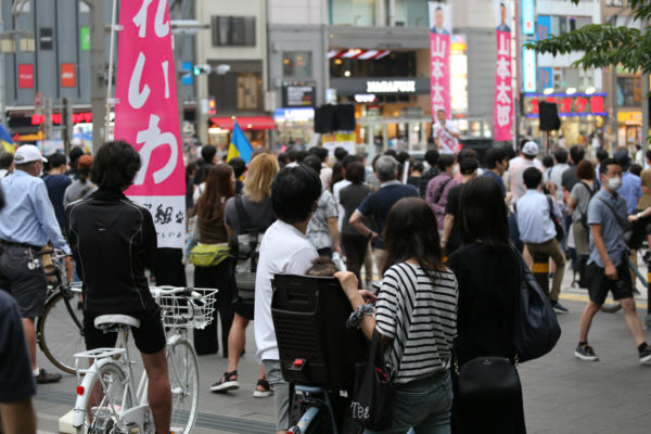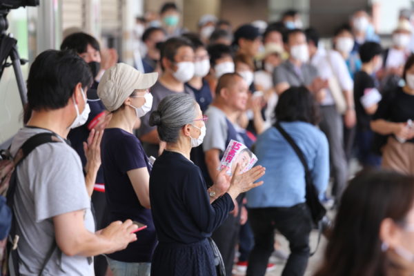 北千住での街宣に、高校生の子どもと一緒に訪れていた母親(40代)は、「山本太郎と同年代のロスジェネ世代でもあり、その勢いに期待している。彼は、今まで光の当たらなかった貧困世帯の人々の生活に光を当ててきたが、今はそういう貧困層がどんどん増えている。我が家は航空会社に勤めているので比較的安定した中間層だったが、所得は増えていても社会保険料や税金が値上がりし、各種控除などが打ち切られて、手取りがどんどん減っている。しかもコロナによる一斉減便でテレワークになり、部門によって10~30%カットの減給だ。たいへんな人たちのことを同情する場合ではなく、自分たちも明日はわからなくなってきた。だから彼の政治変革にかけるパッション(情熱)が以前よりも心に響いてくるようになった」と語り、公選ハガキを持ち帰った。