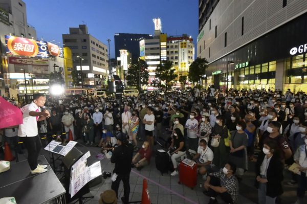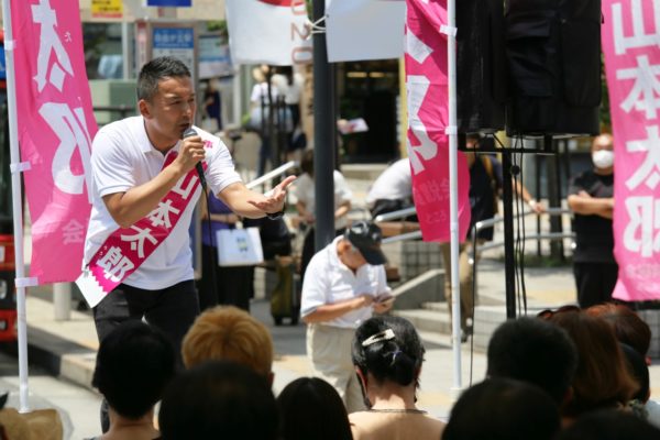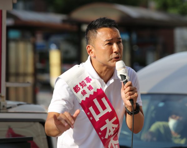 れいわ新選組公認の山本太郎陣営はゲリラ街宣を1日に4~5カ所こなし、旺盛に無党派層との対話を図っている。コロナ禍のなかで職や家を失うなどの苦難に陥った広範な人々の生活実態を救済することや、それ以前から貧困に拍車をかけてきた非正規雇用の増大や社会保障の切り捨てなどの政治の問題点を厳しく指摘し、公共の役割を縮小させて一部には利権誘導し、大多数に「自己責任」を押しつける緊縮財政ではなく、積極財政による大胆な公共投資を進めていくことを柱にした政策を熱を込めて訴えている。既存の「野党共闘」の枠組みではなく、単独で立候補した同陣営が勝利するためには、政治に失望して投票権を放棄している5割もの有権者の切実な問題意識と結びつくことが必須条件であり、ボランティアに支えられながら、人々に直接訴えかける街頭活動に日増しに力が入っている。