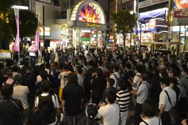 友人と一緒に演説を聞いていた20代の男性は、「公約を一つも実行しないのに平然としている小池知事は信用できない。自民党も同じだ。山本さんの政策には強い気持ちがある。国民に対する愛情を感じる。この選挙戦のなかで、その気持ちが伝染していけばいいのではないかと感じている。自分の周りでは山本さんをお笑い芸人のように見て、現職が無難と見なす空気もあるが、私は応援したいし、その思いを伝えていきたい」と表情を引き締めて語った。