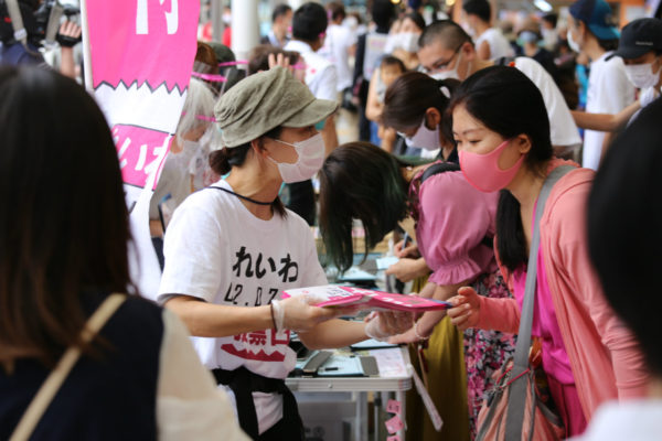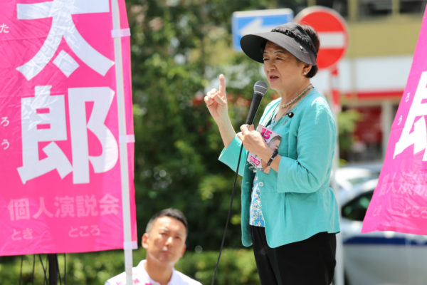 前列で演説を聞いていた60代の女性は「はっきりとした主張で共感できるが、テレビなどでまったくとりあげられないことが残念だ」と悔しそうにのべ、「昨年の日本全国ツアーの映像をSNSで見て、素晴らしい主張をする政治家がいることに驚いた。なによりも弱者に対する優しさを持ち、そのために自分を捨ててやっている。先に自分の安泰を考えて行動する世の中にあって、損得勘定抜きでやっている数少ない政治家だ。ただ批判をして終わりではなく、情報の裏付けをとっているから説得力がある。メディアがとりあげないので一気に広がりをもつのは難しいが、この姿勢を貫いて頑張ってほしい」とのべて、公選ハガキを持ち帰った。