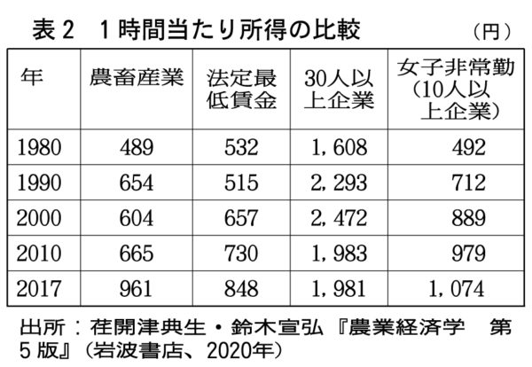 そもそも、農家の所得を1時間あたりに換算した時給【表②】は、コロナ・ショック以前の問題として、平均961円しかない。