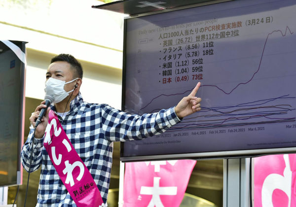 れいわ新選組の山本太郎代表は、4月24日から九州に入り、福岡県内の主要な駅で街頭演説を展開している。コロナ禍のため関係者は全員PCR検査を受けて臨むなどの感染防止対策をしたうえで、事前告知をしないゲリラでおこなっている。長引くコロナ禍で一層深刻化する貧困や出口の見えない経済不況に対する国の対策の遅れを指摘するとともに、積極財政による人々への大胆な給付や経済支援、PCR検査拡充などの感染症対策の徹底、さらに消費税をはじめとする負担軽減などの緊急政策を熱を込めて訴え、沿道の聴衆から強い共感を集めている。一般聴衆からの質問も国のコロナ対策についての疑問が目立ち、山本氏は「意図的なコロナ放置の背景には別の目的が潜んでいる」と強調した。24日にJR小倉駅前でおこなわれた街頭演説から、聴衆とのやりとりの一部を紹介する。