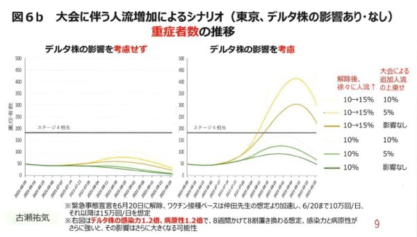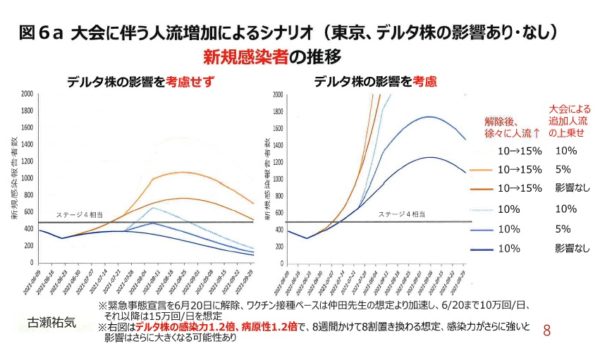 提言では、「大会期間中を含め、ワクチンの効果で重症者の抑制が期待できるようになるまでの間、感染拡大及び医療逼迫を招かないようにする必要がある。ワクチン接種が順調に進んだとしても、7月から8月にかけて感染者および重症者の再増加が見られる可能性がある。また、変異株の影響も想定する必要がある」とし、「無観客開催が望ましい」とした。内容は概略以下のようなものだ。