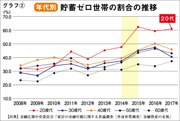 実質賃金も右肩下がりであり、厚労省の調べでは所得の中央値は1995年は545万円だったのが2019年には437万円まで下がった。この25年で所得の中央値は108万円も低下している。さらに2017年の日銀の調査では、「貯蓄ゼロ世帯」が20代では61%、30代で40・4%、50代で43%であり、年を追うごとに増していることがわかる。厚労省の国民生活基礎調査では、国民全体の57・7%、母子世帯の82・7%が生活が苦しいと答えるなどしている。20年以上続くデフレで日本経済が衰退し、消費が失われ、需要も失われ、投資も失われ、国民の窮乏化が深刻なまでに進んでいることを示している。