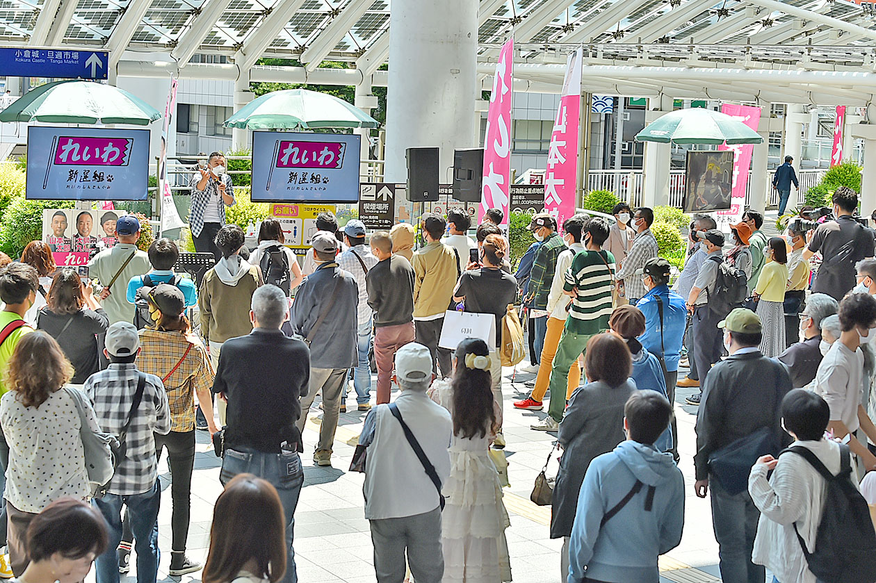 山本太郎の街頭演説に集まった人々(5日、小倉駅前)