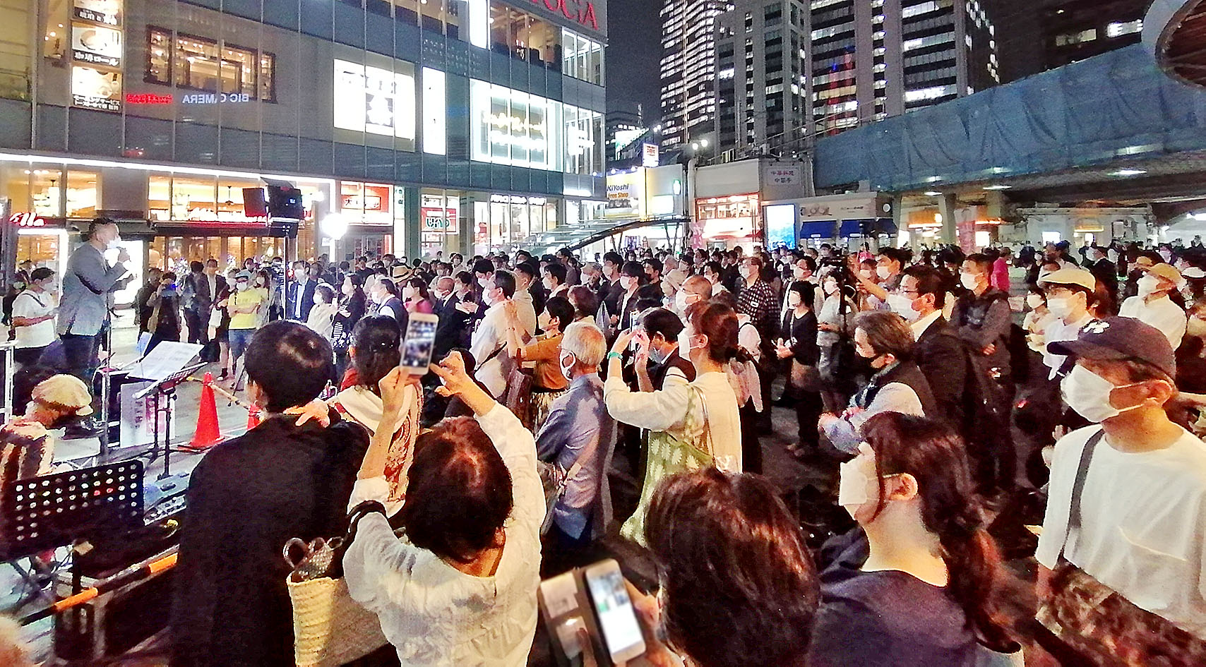 山本太郎の街頭演説に集まった人々(20日、有楽町駅前)