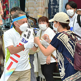 玉城デニー街頭演説&商店街練り歩き(2日、那覇市)●