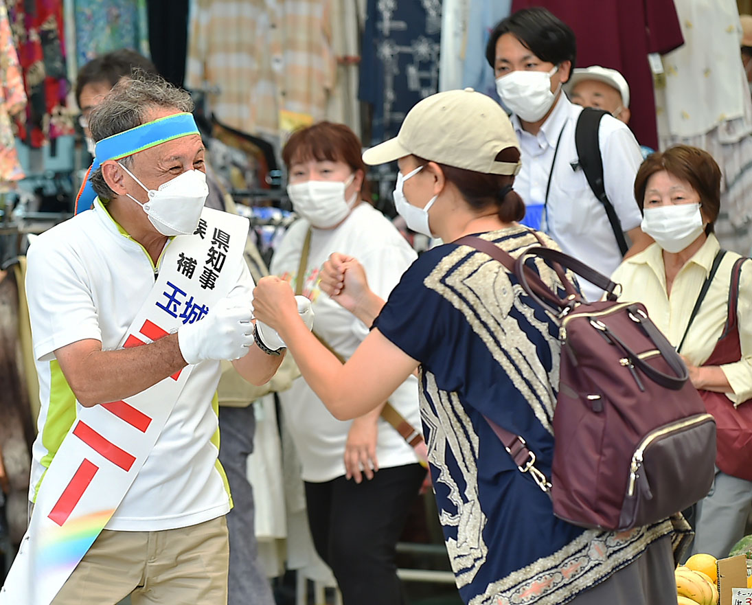 玉城デニー街頭演説&商店街練り歩き(2日、那覇市)