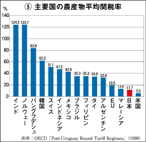 「日本の農業は世界で最も高関税で守られた閉鎖市場」というが、食料自給率37%の国のどこが農業鎖国なのか。農産物の関税が高いわけがない【グラフ⑤参照】。