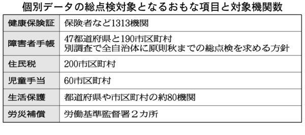 また、誤紐付けが多発している障害者手帳については、エクセルで情報管理をしていて手作業でデータをコピーするさいに1行ずれてしまうなどの人為的なミスがあったとし、紐付けをきちんとやっていたかどうかにかかわらず、すべての自治体を個別データの点検対象とするとしており、点検対象となった地方自治体などからは悲鳴が上がっている。