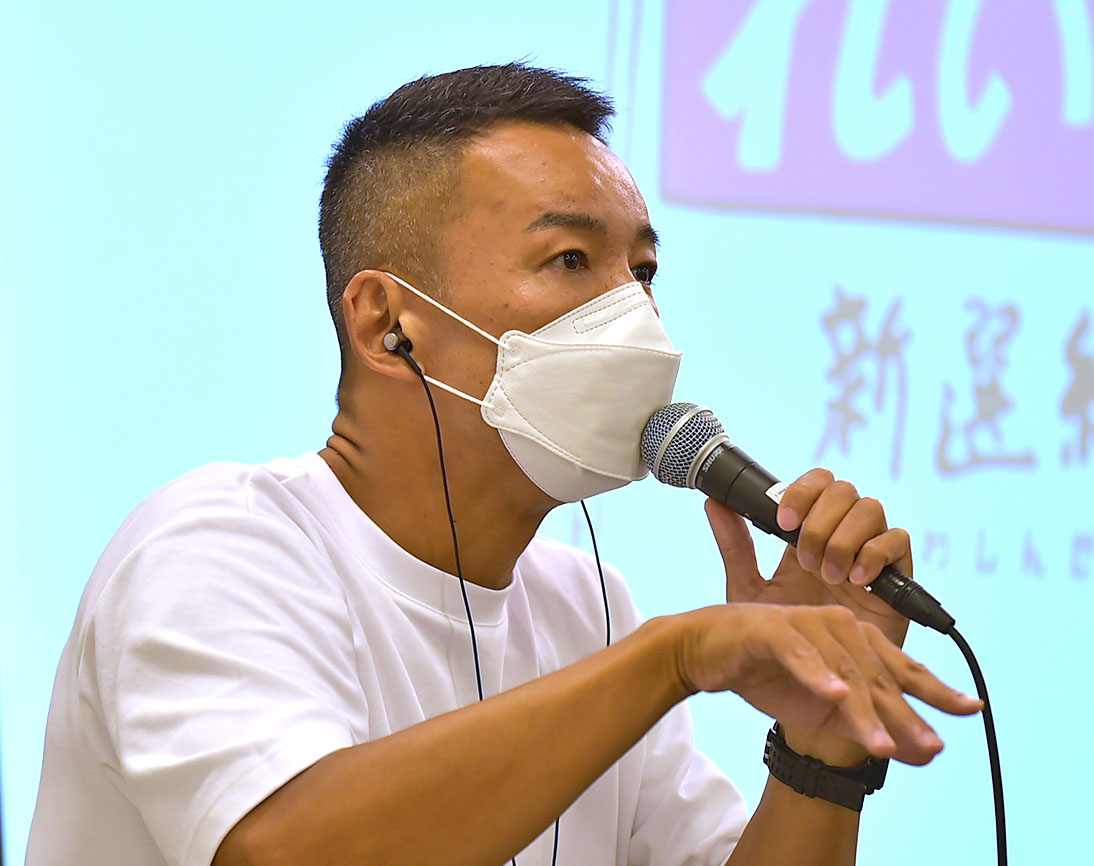 おしゃべり会で参加者と対話をする山本太郎氏(広島市)