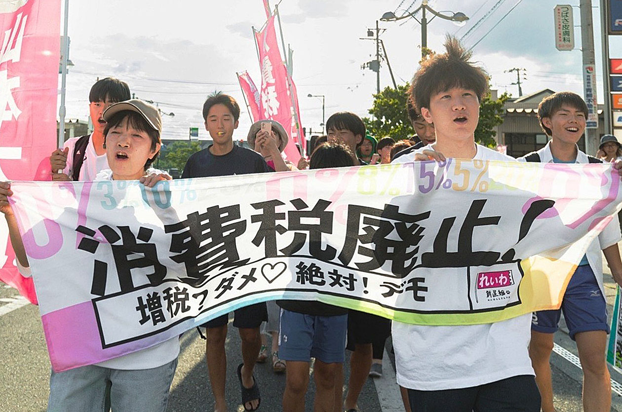 若者が多く参加した山形県東根市での増税反対デモ(7月5日)