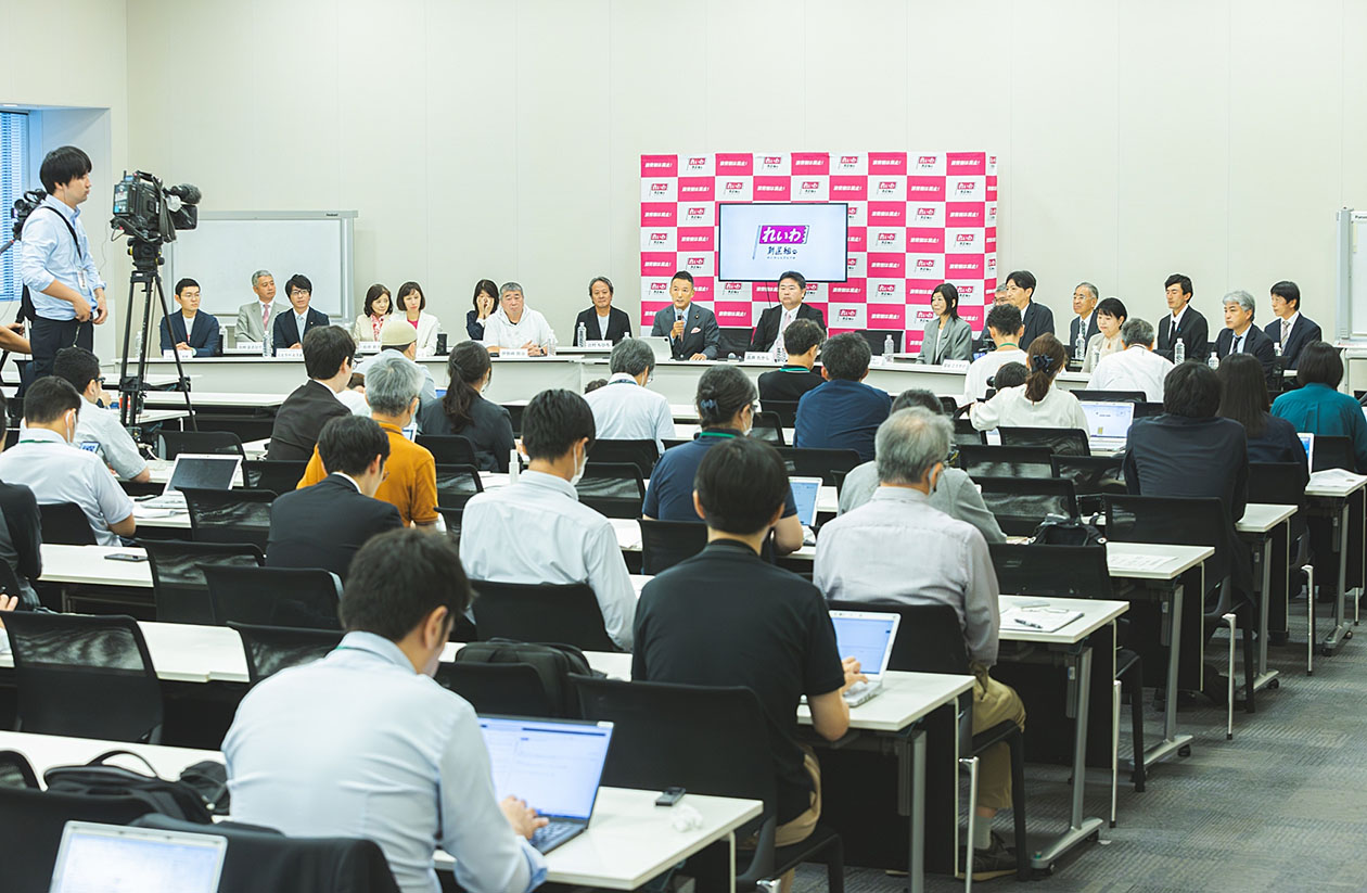 れいわ新選組候補予定者の発表記者会見(7日、東京)
