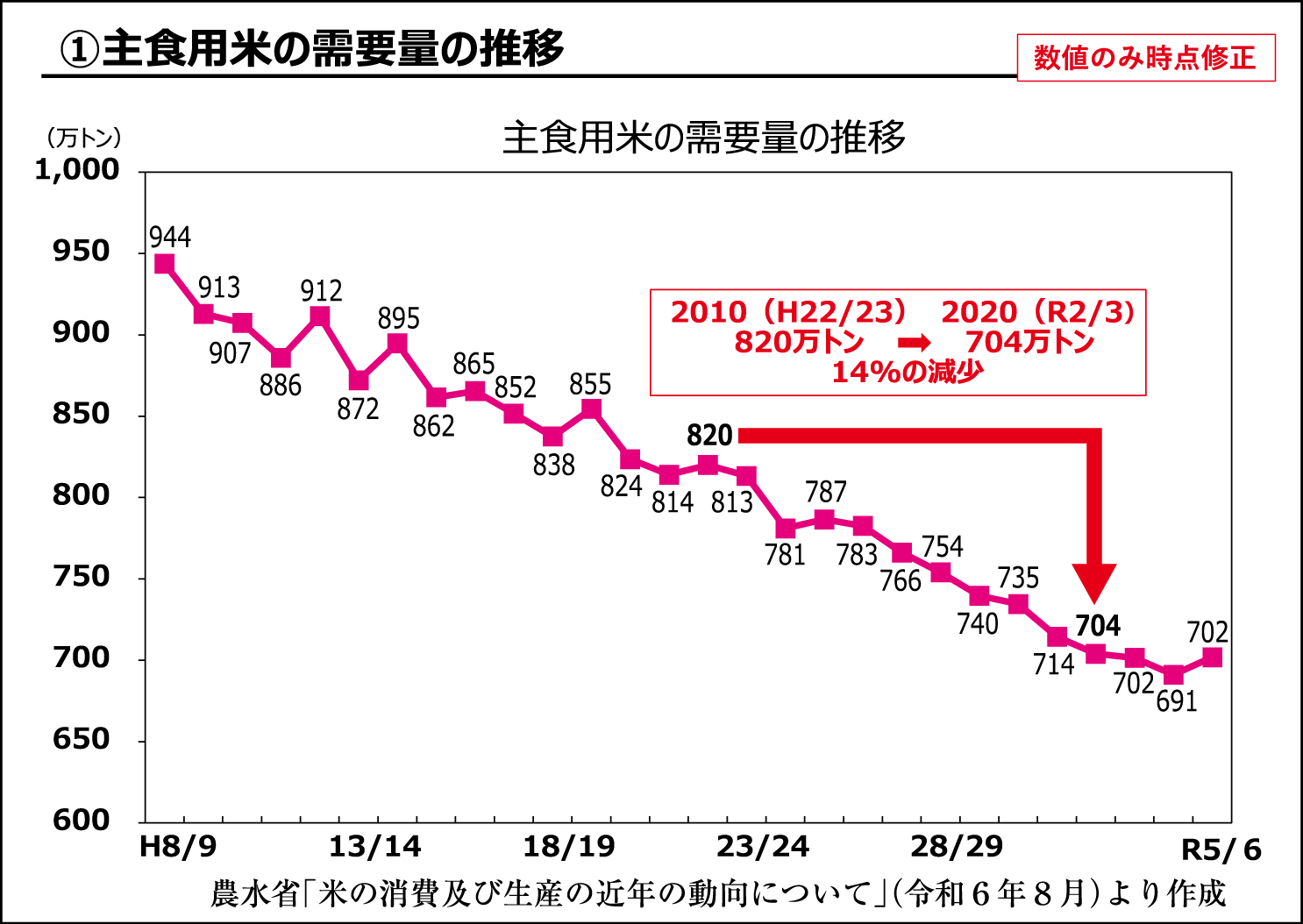 0@2A図1 主食用米の需要量の推移